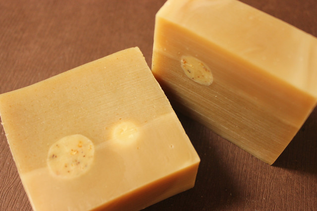 這兩塊的配方為椰子油、棕櫚油、白油、橄欖油、蓖麻油、小麥胚芽油、芥花油。添加物有紅麴粉、粉紅石泥粉、備長炭粉、珊瑚香水香氛、保加利亞玫瑰精油。