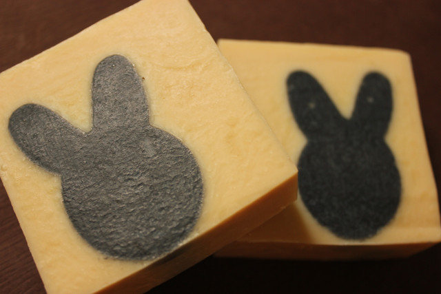 先來張HAPPY黑皮小兔子的照片囉! 利用烘焙道具的餅乾壓模所成的兔子造型,是不是金古錐哩 ? 跟今年的兔年有搭配到^__^ 黑色的部分是備長炭粉,小兔取名為黑皮,希望用這塊的主人們可以快快樂樂,HAPPY!